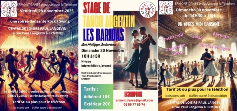 Que vous soyez débutant ou confirmé, seul ou en couple, notre programme varié et dynamique saura vous surprendre et vous enflammer. Alors rejoignez-nous sur la piste de danse et laissez-vous emporter par la passion ! Les cours ont lieu au centre de loisirs Paul Langevin 4 rue Paul Langevin à Ermont ou le lundi au stade Rebuffat à Ermont.